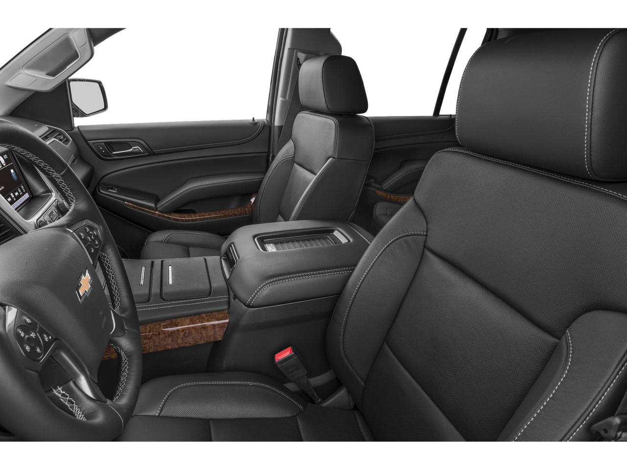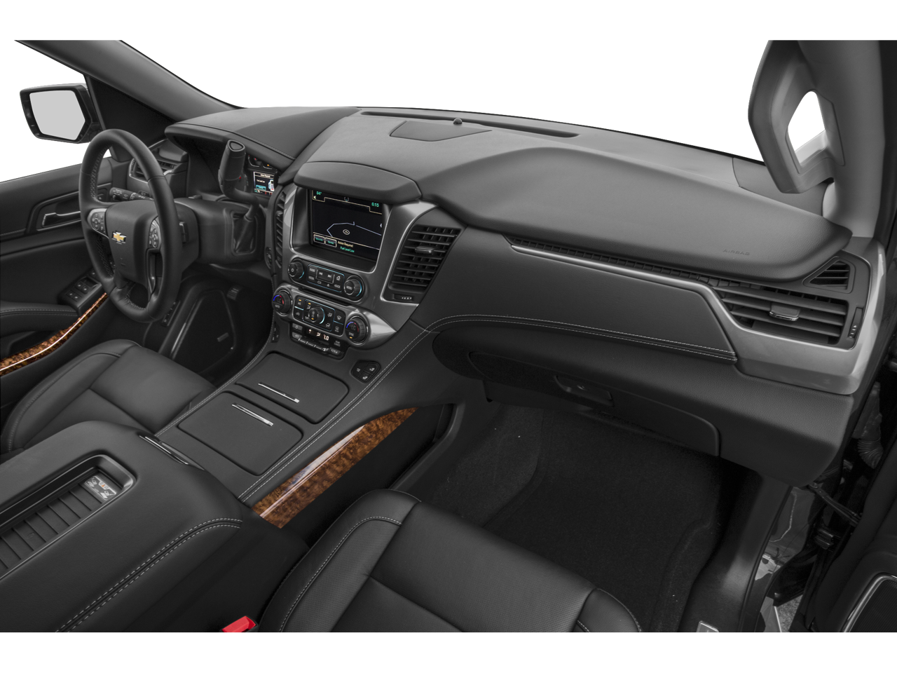 SUN, ENTERTAINMENT AND DESTINATIONS PACKAGE, (CF5) power sunroof, (U42) rear seat DVD entertainment system and (IO6) Chevrolet MyLink radio with navigation, WHEELS, 22 X 9 (55.9 CM X 22.9 CM) 6-SPOKE CHROME MULTI-FEATURED DESIGN, ENTERTAINMENT SYSTEM, REAR SEAT, BLU-RAY/DVD with remote control, overhead display, four 2-channel wireless infrared headphones and auxiliary audio/video input jacks/SD and USB slots, includes second screen for third row passengers, ADAPTIVE CRUISE CONTROL with Front Automatic Braking, sophisticated radar transceiver automatically adjusts speed to maintain preset following distance, LPO, BLACK ROOF RACK CROSS BARS (dealer-installed), SEATING, FRONT BUCKET WITH PERFORATED LEATHER-APPOINTED HEATED AND COOLED SEAT CUSHIONS 12-way power driver and passenger seat includes 6-way power cushions, driver seat 2-position memory, 4-way power lumbar control and power recline (STD), AUDIO SYSTEM, CHEVROLET MYLINK RADIO WITH NAVIGATION, AM/FM STEREO AND CD PLAYER 5 USB ports, 1 SD card reader and an auxiliary jack (STD), ENGINE, 5.3L V8 ECOTEC3 WITH ACTIVE FUEL MANAGEMENT, DIRECT INJECTION AND VARIABLE VALVE TIMING includes aluminum block construction (355 hp [265 kW] @ 5600 rpm, 383 lb-ft of torque [518 N-m] @ 4100 rpm) (STD), TRANSMISSION, 6-SPEED AUTOMATIC, ELECTRONICALLY CONTROLLED with overdrive and tow/haul mode (STD). Chevrolet LTZ with Black exterior and Jet Black interior features a 8 Cylinder Engine with 355 HP at 5600 RPM*.