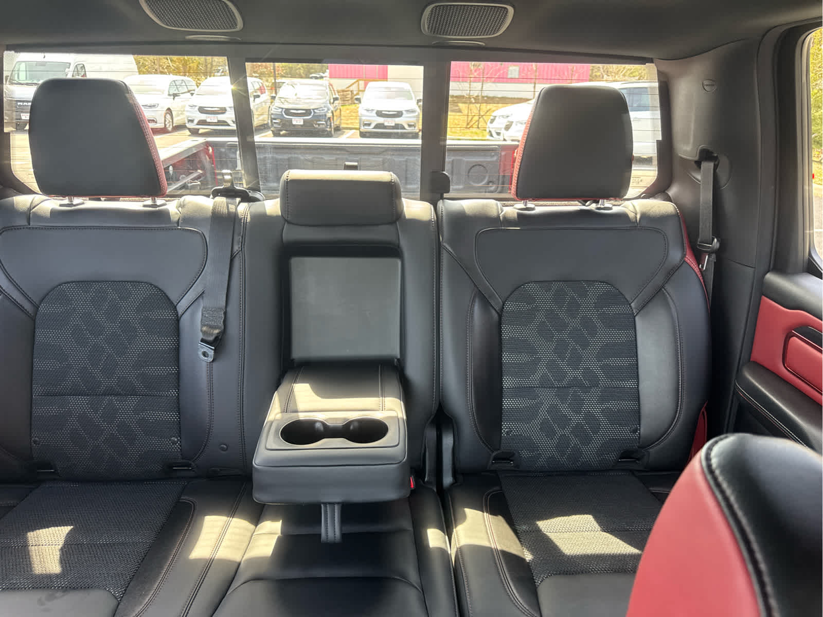 REBEL LEVEL 2 EQUIPMENT GROUP Google Android Auto®, Radio: Uconnect 4 w/8.4 Display, Rear Window Defroster, Rain Sensitive Windshield Wipers, Integrated Center Stack Radio, ParkSense Front/Rear Park Assist w/Stop, Rear View Auto Dim Mirror, Power Adjustable Pedals, Rear Dome w/On/Off Switch Lamp, 115V Auxiliary Rear Power Outlet, Auto Dim Exterior Driver Mirror, 2 USB Full Function/Charge Only Media Hub, Rear Underseat Compartment Storage, Heated Front Seats, Heated Steering Wheel, 8.4 Touchscreen Display, Foam Bottle Insert (Door Trim Panel), Security Alarm, Power Heated Fold Away Mirrors, Apple CarPlay®, Remote Start System, Exterior Mirrors w/Supplemental Signals, Exterior Mirrors Courtesy Lamps, Air Conditioning ATC w/Dual Zone Control, Remote Proximity Keyless Entry, Universal Garage, 4-CORNER AIR SUSPENSION, DUAL-PANE PANORAMIC SUNROOF Premium Overhead Console, Dome Dual LED Reading Lamp, Overhead LED Lamps, ENGINE: 5.7L V8 HEMI MDS VVT Active Noise Control System, Heavy Duty Engine Cooling, Dual Exhaust w/Black Tips, GVWR: 7,100 lbs, Hemi Badge, 220 Amp Alternator, RADIO: UCONNECT 4C NAV W/8.4 DISPLAY Google Android Auto®, SiriusXM Traffic Plus, Disassociated Touchscreen Display, HD Radio, For Details, Visit DriveUconnect.com, Integrated Center Stack Radio, 1-Yr SiriusXM Guardian Trial, Air Conditioning ATC w/Dual Zone Control, GPS Navigation, SiriusXM Travel Link, No Satellite Coverage w/HI/AK/PR/VI/GU, 8.4 Touchscreen Display, Apple CarPlay®, TRI-FOLD TONNEAU COVER, 9 AMPLIFIED SPEAKERS W/SUBWOOFER, SPRAY IN BEDLINER, TRANSMISSION: 8-SPEED AUTOMATIC (8HP75). Ram Rebel with Flame Red Clearcoat exterior and Red/Black interior features a 8 Cylinder Engine with 305 HP at 6400 RPM*.