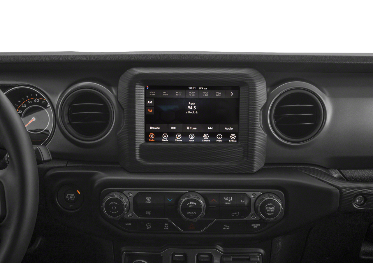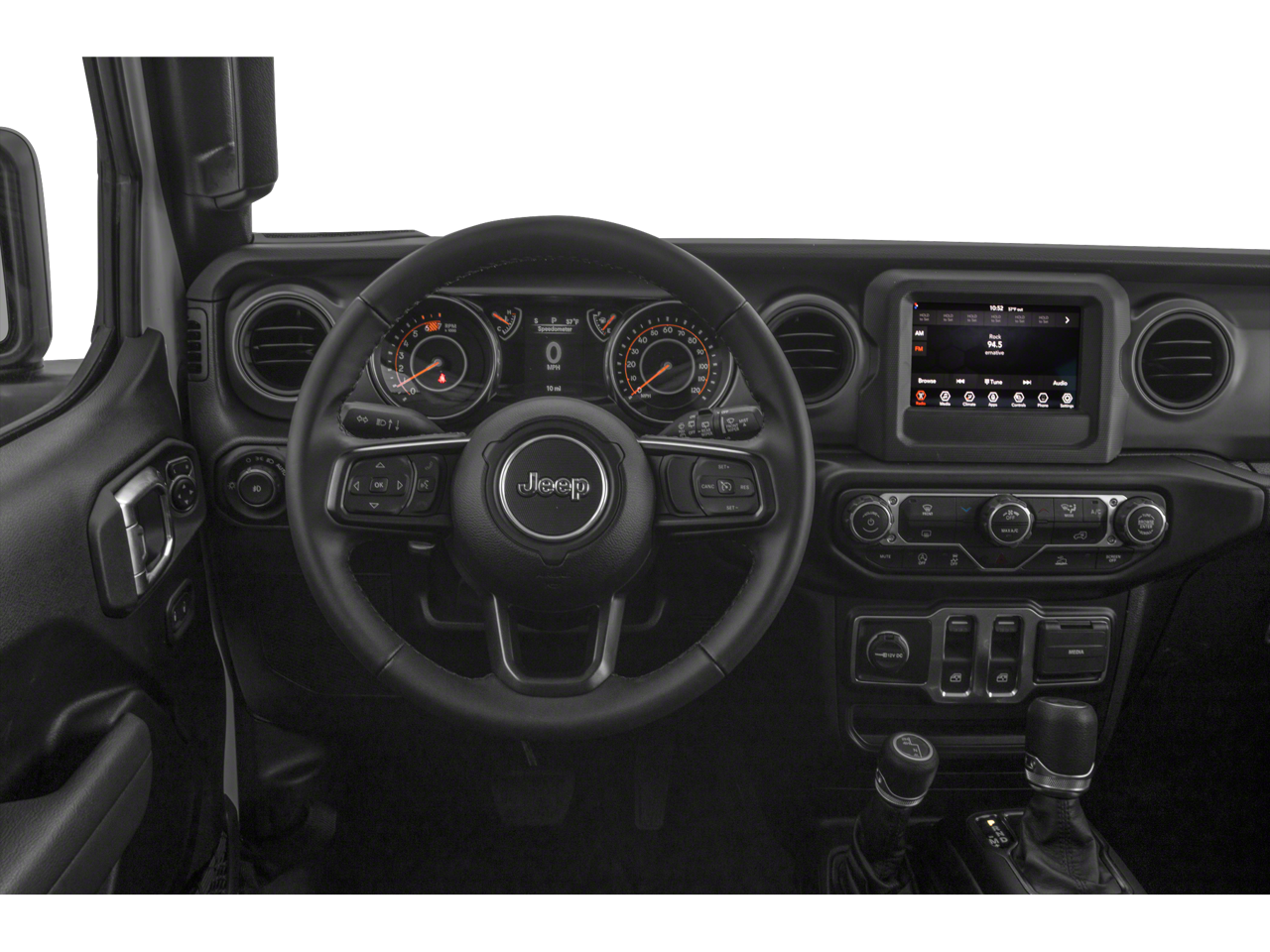AIR CONDITIONING Google Android Auto®, R1234YF A/C Refrigerant, Integrated Center Stack Radio, 7.0 Touchscreen Display, Radio: Uconnect 4 w/7 Display, Apple CarPlay®, DEEP TINT SUNSCREEN WINDOWS, TRANSMISSION: 6-SPEED MANUAL (STD), ENGINE: 3.6L V6 24V VVT UPG I W/ESS (STD). Jeep Sport with Granite Crystal Metallic Clearcoat exterior and Black interior features a V6 Cylinder Engine with 285 HP at 6400 RPM*.