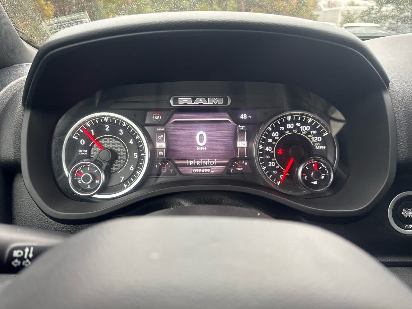 ENGINE: 5.7L V8 HEMI MDS VVT ETORQUE Active Noise Control System, Heavy Duty Engine Cooling, Passive Tuned Mass Damper, GPEC 5 Engine Controller, GVWR: 7,100 lbs, Dual Rear Exhaust w/Bright Tips, HEMI Badge, 23 Gallon Fuel Tank, 18 Aluminum Spare Wheel, BIG HORN LEVEL 2 EQUIPMENT GROUP Google Android Auto®, SiriusXM Radio Service, Bluetooth® Handsfree Phone & Audio, USB Host Flip, Rear Window Defroster, For Details, Visit DriveUconnect.com, Integrated Center Stack Radio, ParkSense Front/Rear Park Assist w/Stop, Rear View Auto Dim Mirror, Power Adjustable Pedals, Rear Power Sliding Window, Rear Dome w/On/Off Switch Lamp, Connectivity - US/Canada, Glove Box Lamp, 4G LTE Wi-Fi Hot Spot, 115V Auxiliary Rear Power Outlet, Media Hub w/2 Charge Only USBs, Exterior Mirrors w/Heating Element, Power 8-Way Driver Seat, Auto Dim Exterior Driver Mirror, Heated Front Seats, Radio: Uconnect 5 W w/8.4 Display, Heated Steering Wheel, 8.4 Touchscreen Display, Class IV Receiver Hitch, Security Alarm, Black Premium Power Mirrors, Apple CarPlay®, Big Horn IP, WHEELS: 20 X 9 ALUMINUM CHROME CLAD (WRK), PREMIUM LIGHTING GROUP Front LED Fog Lamps, LED Reflector Headlamps, LED Taillamps, WHEEL TO WHEEL SIDE STEPS, BLACK, DELUXE CLOTH BUCKET SEATS Power 8-Way Driver Seat, Bucket Seats, Manual Adjust 4-Way Front Passenger Seat, Full Length Floor Console, Rear Center Armrest, Delete LED Lamp - Floor Console Bin, Power 2-Way Driver Lumbar Adjust, TRANSMISSION: 8-SPEED AUTOMATIC (8HP75). Ram Big Horn with Bright White Clearcoat exterior and Black interior features a 8 Cylinder Engine with 305 HP at 6400 RPM*.