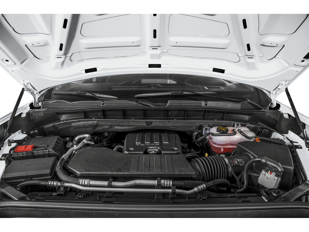 ENGINE, 5.3L ECOTEC3 V8 (355 hp [265 kW] @ 5600 rpm, 383 lb-ft of torque [518 Nm] @ 4100 rpm); featuring Dynamic Fuel Management (Includes (KW7) 170-amp alternator and (MHT) 10-speed automatic transmission. CONVENIENCE PACKAGE includes (QT5) EZ Lift power lock and release tailgate, (AKO) tinted glass, (UF2) LED cargo bed lighting, (C49) rear-window defogger, (K34) cruise control and (DLF) outside power mirrors. AUTO-LOCKING REAR DIFFERENTIAL, GLASS, DEEP-TINTED, MIRRORS, OUTSIDE HEATED POWER-ADJUSTABLE, AUDIO SYSTEM, GMC INFOTAINMENT SYSTEM WITH 7 DIAGONAL COLOR TOUCH-SCREEN, AM/FM STEREO with seek-and-scan and digital clock, includes Bluetooth® streaming audio for music and select phones; featuring wired Android Auto® and Apple CarPlay® capability for compatible phones (STD), TRANSMISSION, 10-SPEED AUTOMATIC, (COLUMN SHIFTER) ELECTRONICALLY CONTROLLED with overdrive and tow/haul mode. Includes Cruise Grade Braking and Powertrain Grade Braking. GMC Pro with SUMMIT WHITE exterior and JET BLACK interior features a 8 Cylinder Engine with 310 HP at 5600 RPM*.