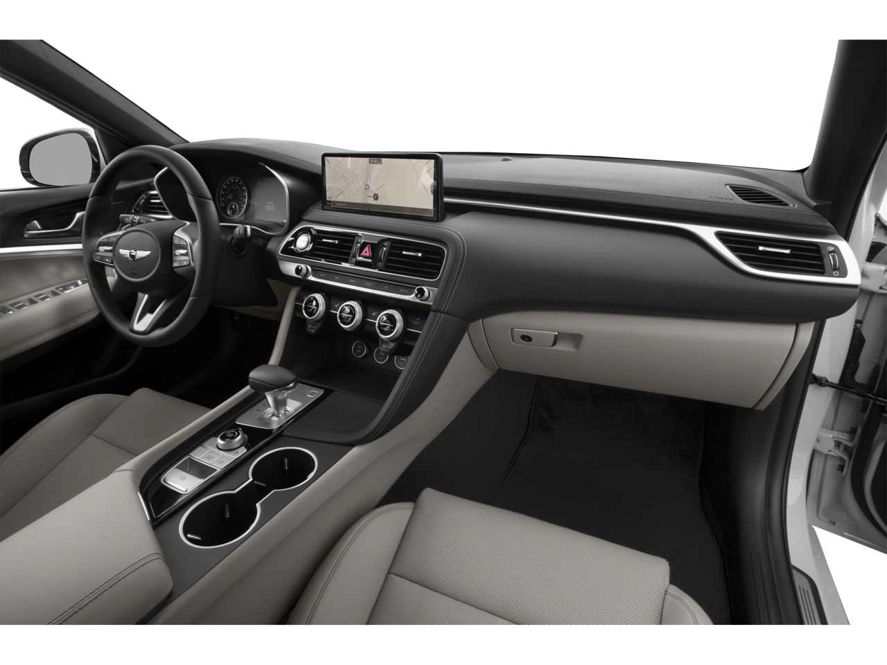 SPORT PRESTIGE PACKAGE Option Group 02, Power Folding ECM Outside Mirrors, Genesis logo puddle lamps, Sport Aluminum Trim, Rain-Sensing Wipers, Front Passenger Seat Walk-In Device, Power Telescoping Steering Wheel, Dark Chrome Grille & Daylight Opening Trim, Forward & Reverse Parking Distance Warning, Integrated Memory System (IMS), memory for driver seat, outside mirrors and steering column, Acoustic Front Door Glass, Radio: AM/FM/SiriusXM/HD Lexicon Prem Audio System, QuantumLogic surround sound, 15 high efficiency speakers including 2 subwoofers, Lexicon 11-channel digital external amplifier, speed-sensing, 5th generation navigation system w/10.25 touchscreen, dynamic voice recognition, connected routing, over the air updates, Android Auto® and Apple CarPlay®, Bluetooth® hands-free phone. Genesis 2.0T with Siberian Ice exterior and Obsidian Blk/Sandstorm Gy interior features a 4 Cylinder Engine with 252 HP at 6200 RPM*.